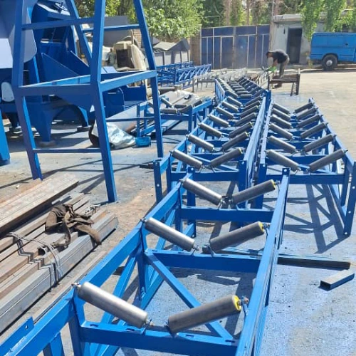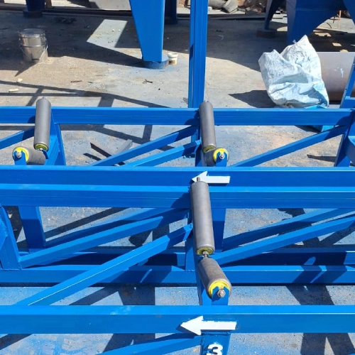 | نوع فرآوری | جوشکاری/مونتاژ (شاسی از پروفیل ST37) + تسمه لاستیکی/پارچهای؛ رولیک غلتکی (۷۶ mm قطر)؛ ۲-۴ رولیک نگهدارنده |